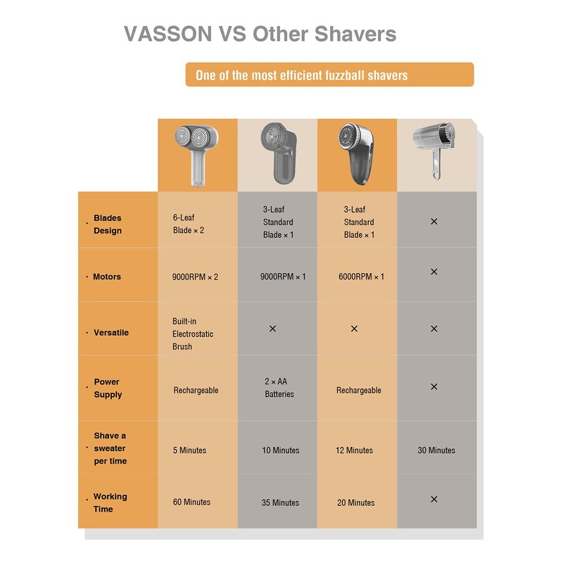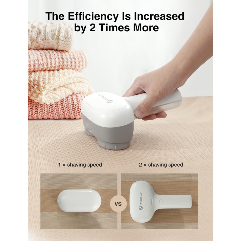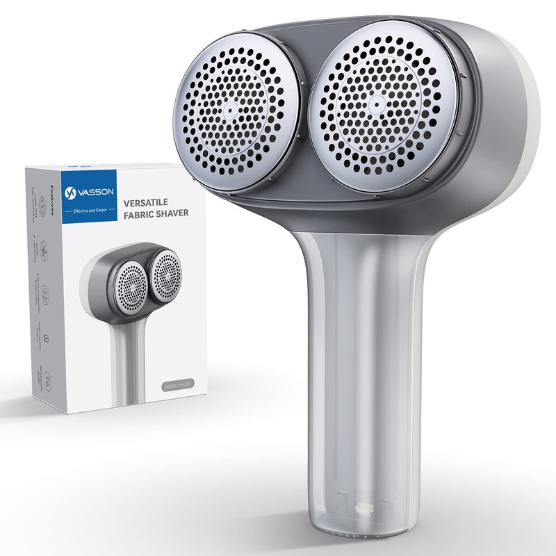 - Quick And Efficient Fabric Shaver - This fabric remover features a dual-head design that lets you cut through excess loose threads, fuzz balls, and lint to help you easily depill and defuzz your clothes. With two high-speed motors, VASSON defuzzer can help you to get rid of every bit of fur and gives your pilled, fuzzy garments a fresh look in just a few minutes.