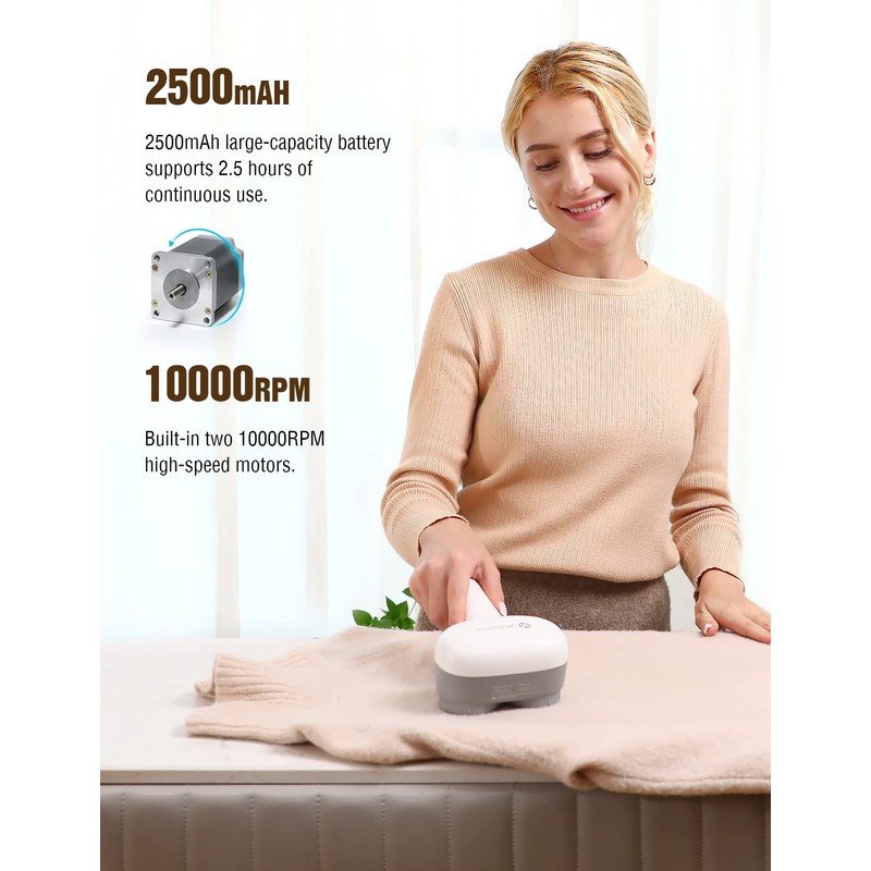 - Versatile and Practical Design: The compact size and cordless design allow you to easily use it on big or small furniture as well. Unlike other lint removers that have to replace the batteries frequently, this fuzz depiller features a rechargeable 2500mAh battery that helps cut down on the cost of batteries while helping keep your clothes looking well maintained the simple way.