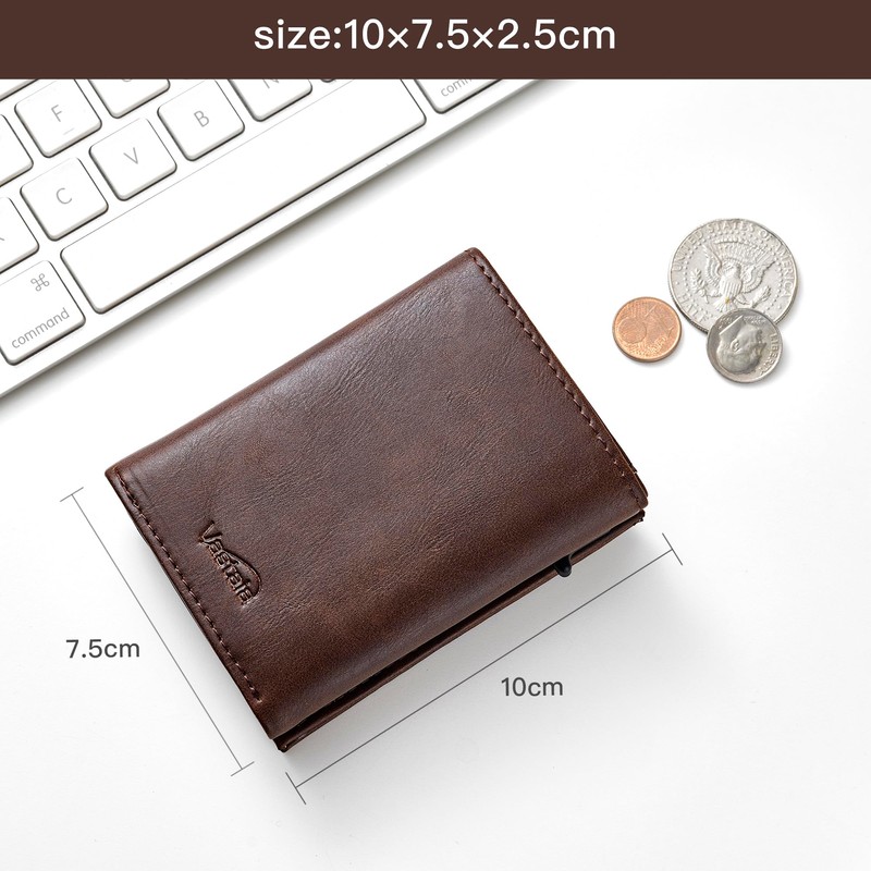 Vastaia Men's Leather Small Wallet with Coin Compartment, Men's and Women's Slim Wallet with RFID Protection, Slim Wallet with Coin Compartment, Dunkelbraun, M, Minimalist