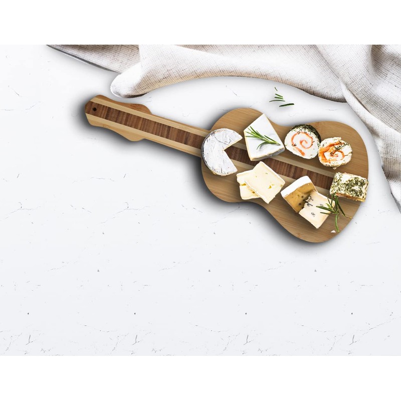 Vastigo Guitar Shaped Bamboo 7” x 17” Serving and Cutting Board – Music Inspired Kitchenware: Perfect for Serving Appetizers, Cheeses, Charcuterie and More