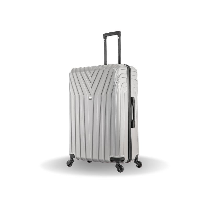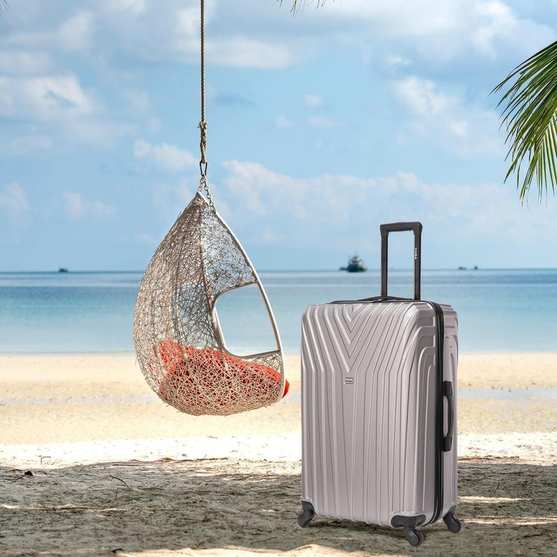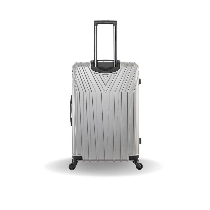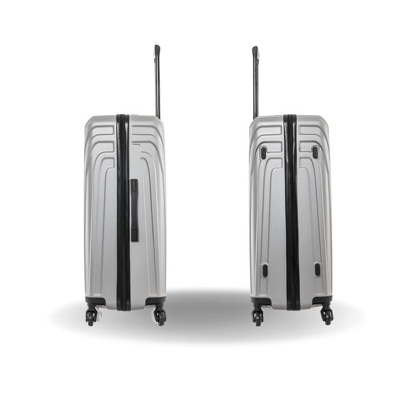 • Lightweight PC/ABS-engineered material with a micro diamond finish. The hard-flex construction offers maximum strength, durability, and a water/scratch-resistant finish. • Contemporary, impact-resistant, functional design. • Push Button Locking internal retractable trolley system. • Four spinner multi-directional silent 360° wheels for effortless mobility. • Full 210D Polyester interior lining and tie-down straps to secure your belongings. • Four side studs allow the luggage to stand upright on its side. • Top and side ergonomic GEL handle for comfortable and easy lifting. • Smooth gliding self-repairable oversized zippers. • Suitable for most major Airlines.