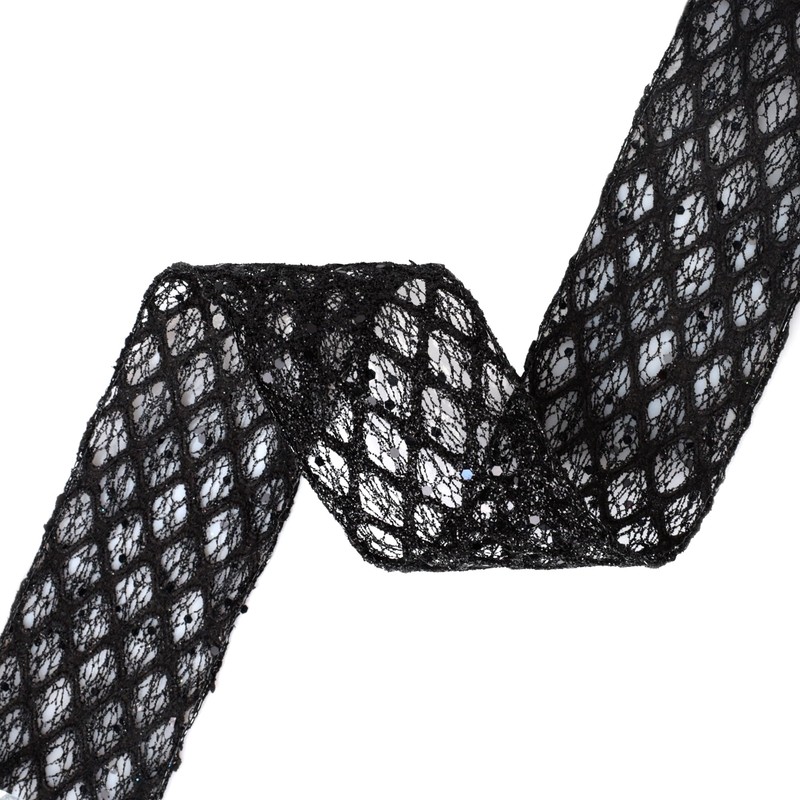 VATIN 2-1/2" Black Christmas Ribbon, Black Glitter Mesh Diamond Web Sequin Dots Wired Christmas Ribbon for Gift Wrapping Bow Making Wreath Supply-10 Yards