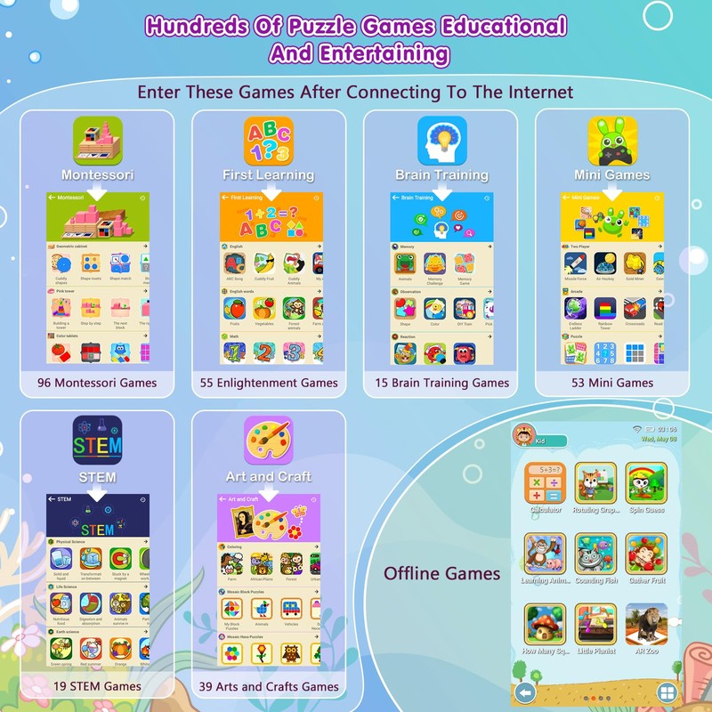 VATOS Kids Smart Phone Toy for Girls Boys 3 4 5 6 7 8 9 Years Old, 4" Large Touchscreen Mermaid Style Kids Cell Phone with Dual Camera, Music Player, Puzzle Game, 8GB Memory Learning Toy Birthday Gift