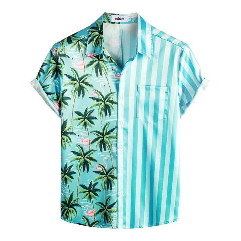 - Printed feature - Flamingo, leopard, tiger and zebra stripe patterns are sewn together, giving the shirt a colourful visual effect, exotic and dynamic