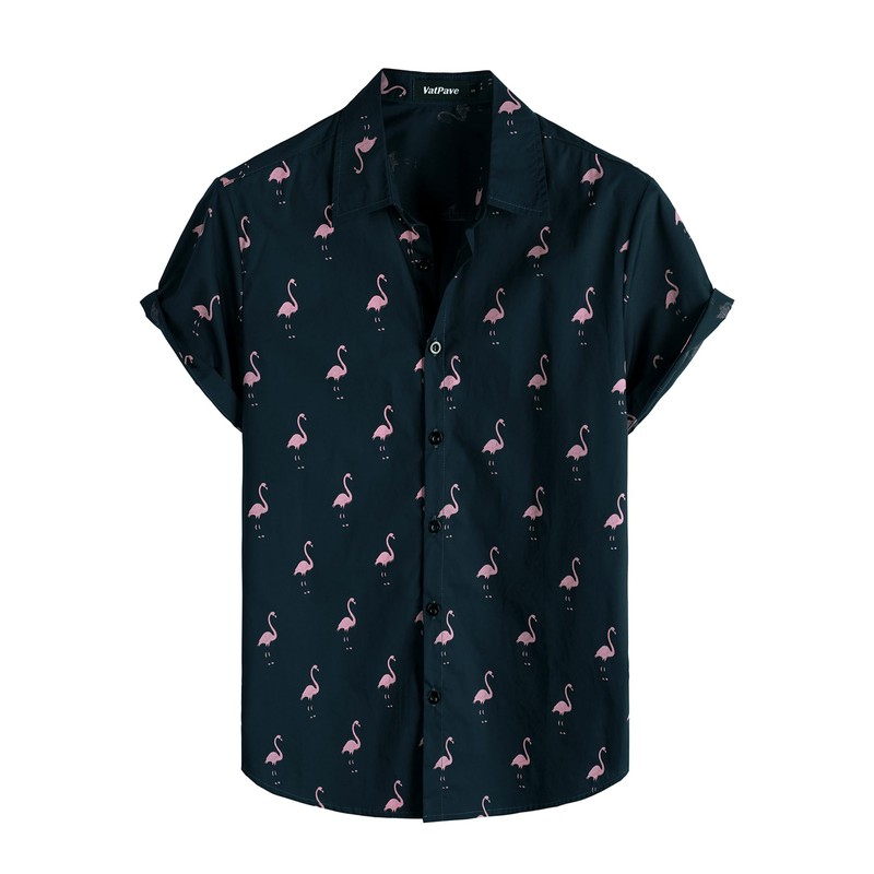 VATPAVE Mens 100% Cotton Hawaiian Shirts Floral Short Sleeve Button Down Shirts Summer Beach Shirts Large Navy Flamingo