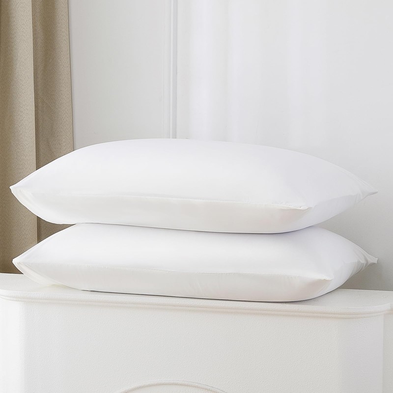 Vaulia Cooling Pillow Cases for Hot Sleepers, Cool Pillowcases for Night Sweats, Soft Silky Breathable Cold Pillow Covers Set of 2 Standard Size with Envelope Closure, White, 20x26 Inches