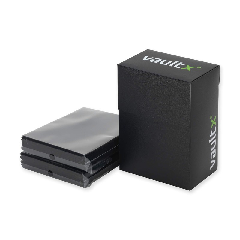 - Medium card deck box + 100 standard size black deck protector sleeves to fit variety of standard sized cards. Made from archival-safe, acid-free non-PVC material the Vault X is the perfect way to store your deck of cards. 12 Month Warranty from date of purchase.