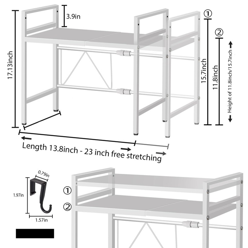 Vautrezon Microwave Oven Rack Expandable Countertop Heavy Duty Microwave Shelf 2-Tier Adjustable Metal Storage Shelf Rack for Kitchen (White)