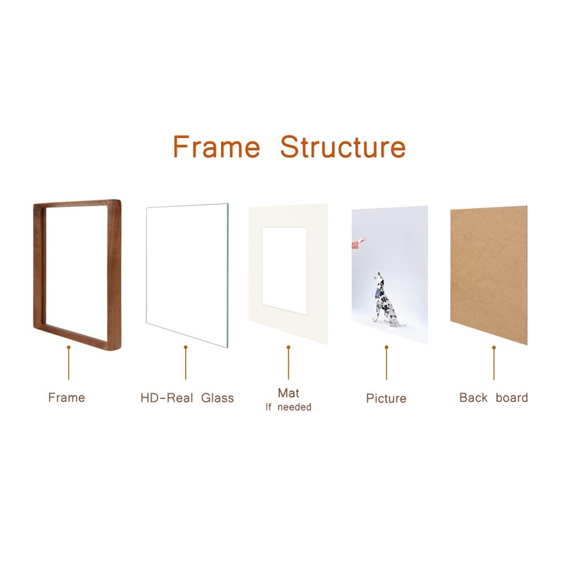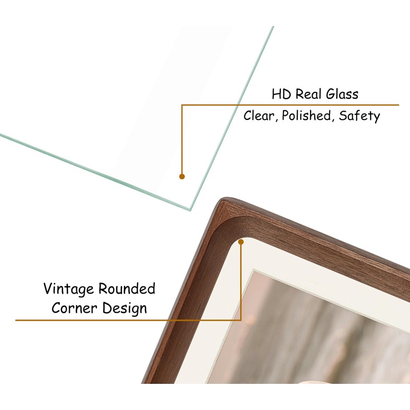 • Premium Material: The frame is made of solid walnut wood and features a traditional double-layer mortise and tenon design, ensuring that the photo frame stays securely positioned on any surface, whether displayed horizontally or vertically.