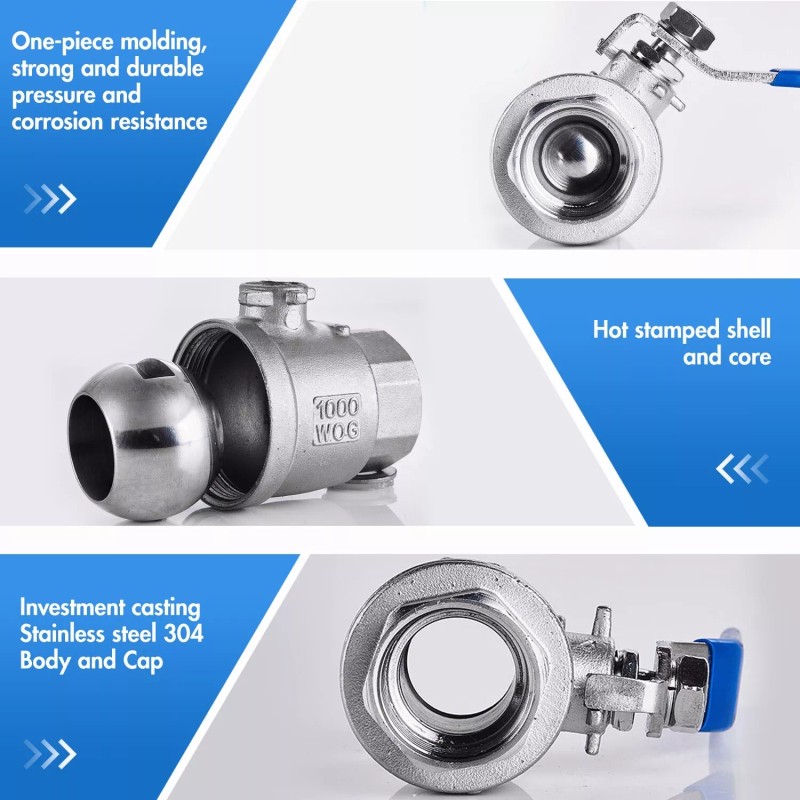 From the brandVAVVAV, a brand that the public trusts, has been focusing on the development of ball valves to bring high quality to your life. Product DescriptionVAV Ball Valve Full Port, 316 Stainless SteelProduct introduction and features1. NPT female threaded ball valves fitted with Iron lever handle will open or shut off flow on most gas, water and oil quickly and easily. The ball valve is mainly used to cut off, change and distribute the flow direction of medium in pipeline. It's suitable for all kinds of pipeline system where you need simple on or off action. 2. In order to prolong the service life of the ball valve, nickel plated on its surface. Nickel plated ball valve has the following features: abrasion resistance, strong corrosion resistance, high temperature resistance, high surface hardness, high gloss, high bonding strength. 3. Ball valve handle light, ball valve small size, can be made into a large diameter, reliable sealing, simple structure, convenient maintenance. Application scenario of ball valve· Link the water piping system · Link the heating and water supply system · Link the fire pipeline system · Link the gas pipeline system · Link the oil pipeline piping system · Link the other non corrosive liquid or gas pipelines