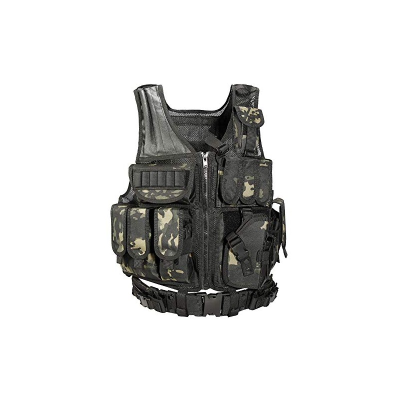 vAv YAKEDA Tactical Vest Outdoor Ultra-Light Breathable Training Airsoft Vest Adjustable for Adults (US, Alpha, One Size, Regular, Regular, Black CP)