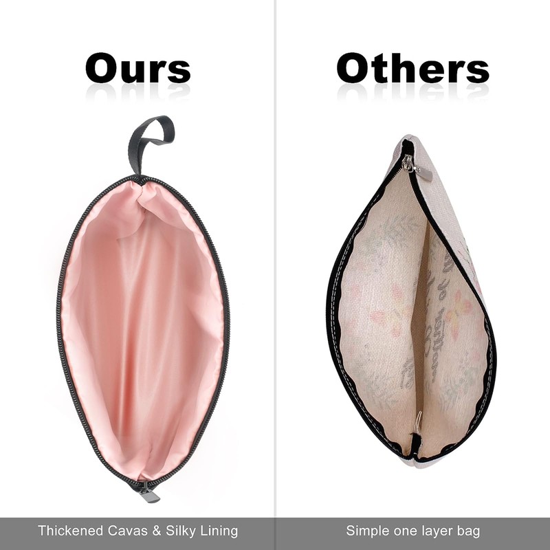 - 🎁【HIgh quality material】Canvas and lined with silk makeup bag