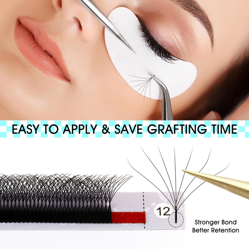 - Better retention: Compared to individual lashes, these W shape premade fans have a long stem which can increase the contact area with natural lashes. Therefore they provide a stronger bond and retention to lashes.