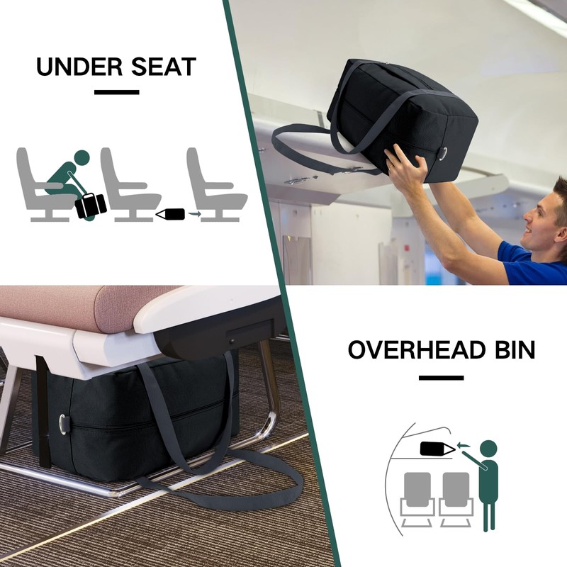 - 【EASY TO USE】: The large-capacity tote bag can quickly store your carry-on items, and there is a layer of zippered pockets on the surface for quick access to small items. We also designed a trolley sleeve on the underseat cabin bag, which allows you to put the duffle bag over the handle of your suitcase for easy carrying.