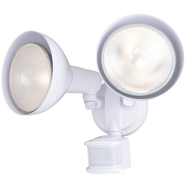 - Uses replaceable 2 x 150 watt PAR 38 medium base E26 screw in bulbs (not included) for maximum brightness. LED compatible for optional added energy efficiency and cost savings. Sensor and light heads rotate for easy adjustment to direct light where it is needed most