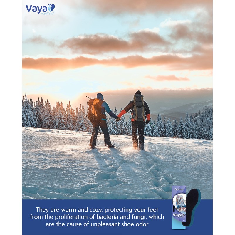 - THERMAL INSOLES WITH ACTIVATED CHARCOAL FOR COLD FEET: The Vaya Polarus thermal insoles are designed for feet that tend to feel cold and sweat. With their innovative structure consisting of three layers, these thermal shoe insoles keep the feet dry, neutralize odors, and insulate against the cold.