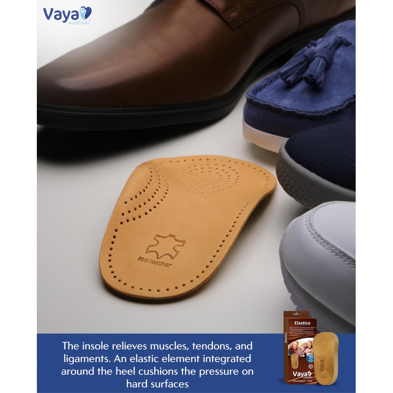 Vaya Medical Orthopaedic Insoles for Longitudinal Flat Foot Insoles Made of Leather for Flat Longitudinal Feet 3/4 Arch Shoe Insoles Elastico 1 Pair Brown Size 37