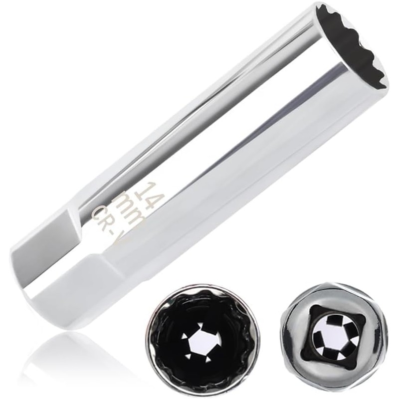 - Precision Fit — The 14mm spark plug socket has a 12-point thin wall design, fits tight spaces in engines like N52/N55 and M156, and works with 3/8-inch ratchets without damaging plugs.