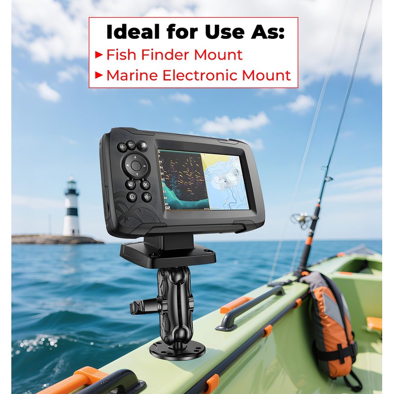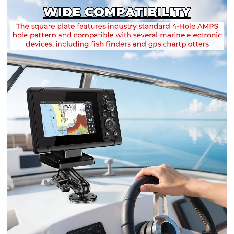 VAZESWIN Aluminum Alloy 1" Ball Fish Finder Mount with Industry Standard AMPS 4-Hole Square Plate & Round Base, Fit for Garmin GPS, Lowrance, Simrad, Compatible with RAM Mounts GPS Mount Phone Holder