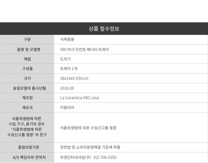 - Product name and model name: [VBC Casa] Incanto Oval Tray 38x14cm//VB10118-38