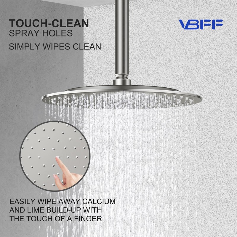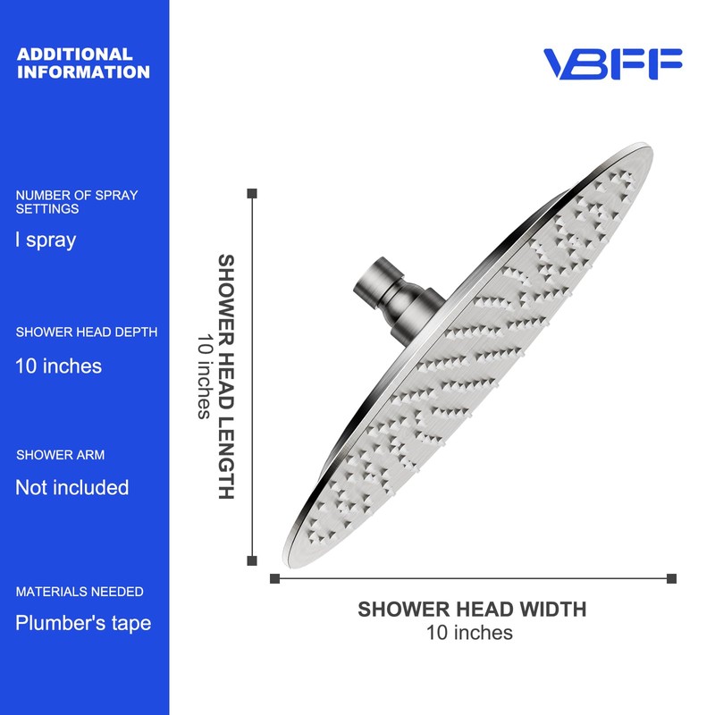 VBFF-Shower Head,rain shower head, 10 inch- Round Shower Head, 1.8 GPM Flow Rate, rainfall showerhead,VBFF12 (Brushed Nickel)