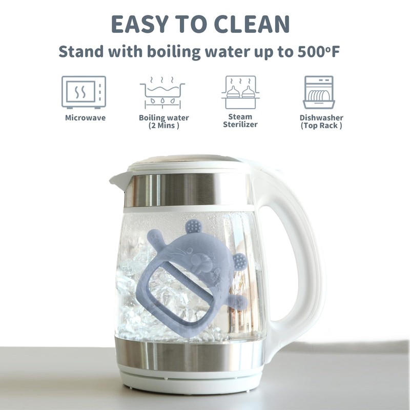 Cleaning this teether is a breeze, as it is suitable for boiling water, microwave oven, or dishwasher disinfection. This makes it convenient for busy parents who want to ensure their baby's teether is always clean and hygienic.Easy-to-use silicone baby teether today and watch as your little one enjoys hours of relief and comfort.