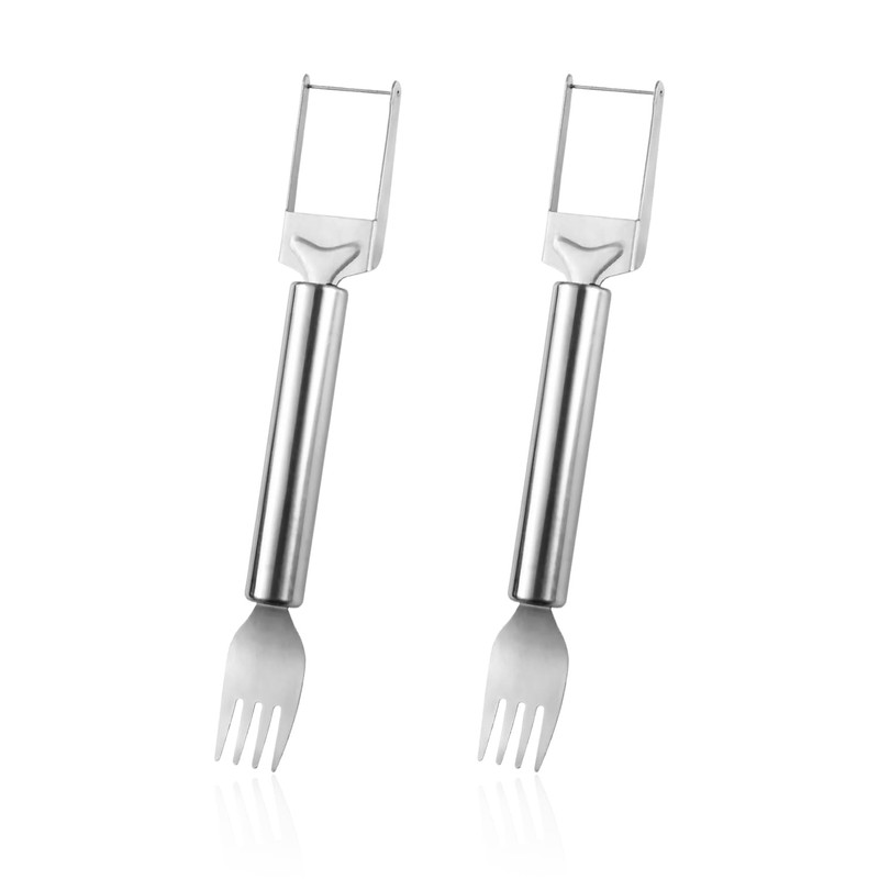 VBRHFRIF 2 Pieces Fruit Fork Cutter, Watermelon Dicing Tool, Double Ended Fruit Fork Cutter, Melon Slicer, Cutting Fork, Watermelon Fork Cutter, Stainless Steel Divider