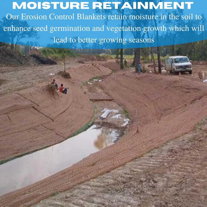 • Moisture Retainment: Our Erosion Control Blankets retain moisture in the soil to enhance seed germination and vegetation growth which will lead to better growing seasons.