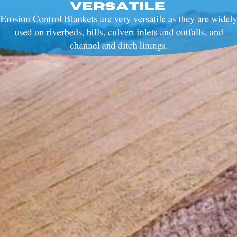 • Versatile: Erosion Control Blankets are very versatile as they are widely used on riverbeds, hills, culvert inlets and outfalls, and channel and ditch linings.