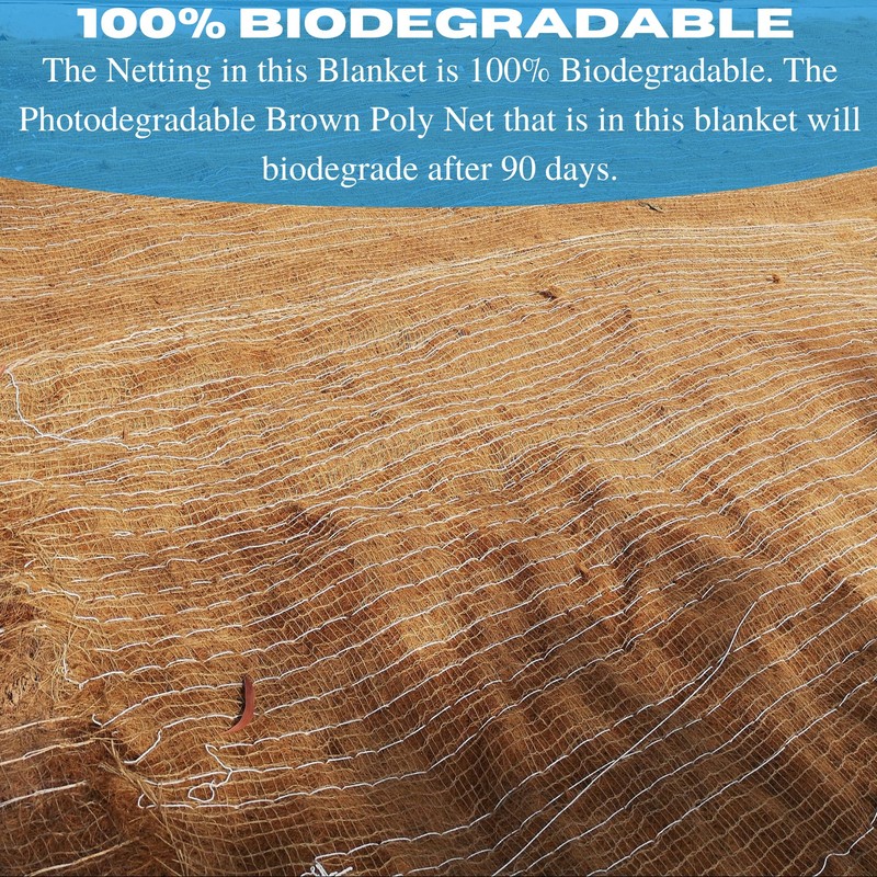 • 100% Biodegradable - The Netting in this Blanket is 100% Biodegradable. The Photodegradable Brown Poly Net that is in this blanket will biodegrade after 90 days.