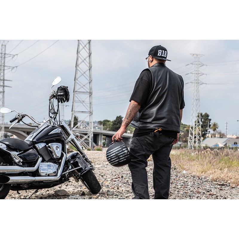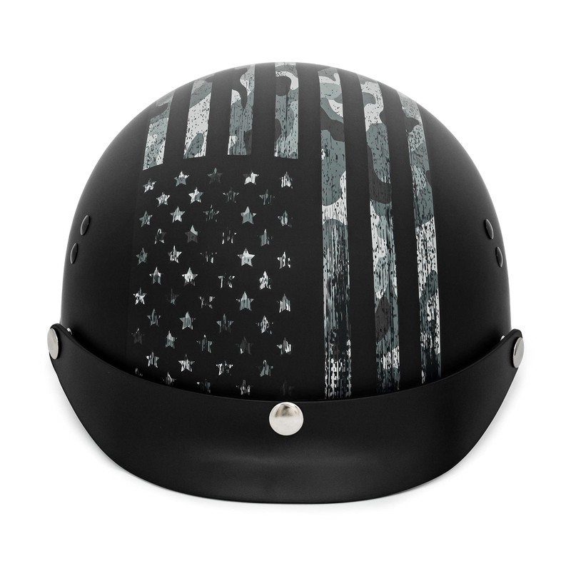 VCAN Cruiser Solid Flat Black Half Face Motorcycle Helmet with Drop-Down Sun Visor, Removable Peak and Quick Release Buckle (Ash Flag, Medium)