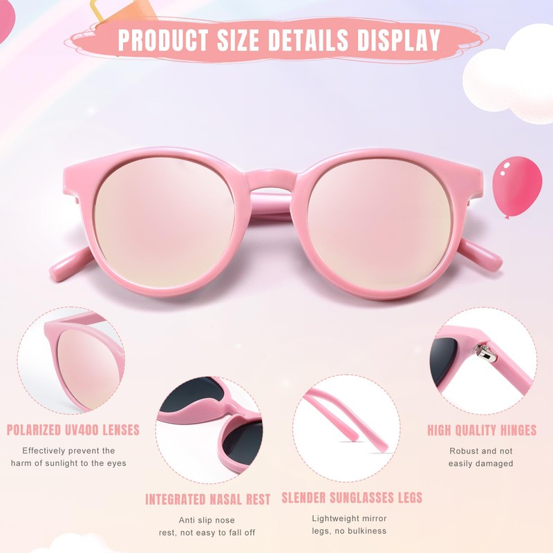 - HD POLARIZING DESIGN: Our kids sunglasses use advanced polarizing lenses,which can effectively filter out dazzling strong light,protect children's eyes from glare damage and make their vision clearer to made colors more realistic during outdoor activities.
