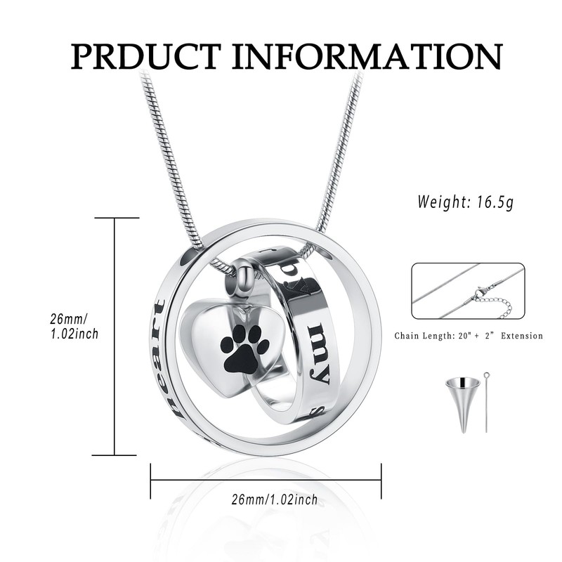 - Neckalce Quality - Premium Grade 316l Stainless steel pendant & chain will never rust, corrode, rust or stain. Screw & rubber gasket secures a tight seal to keep your pet or human urn ashes.