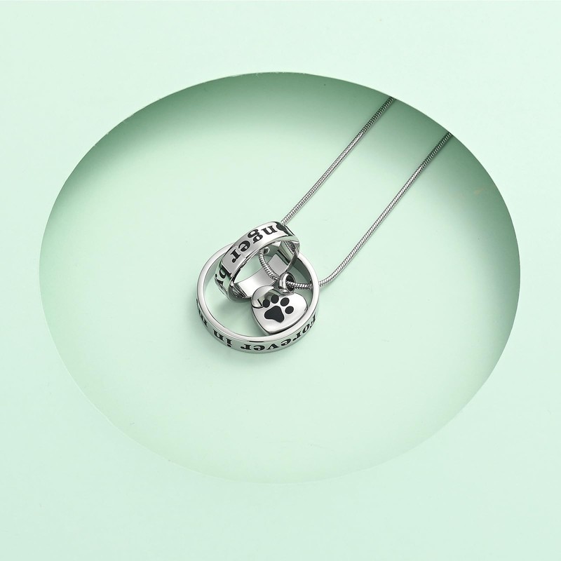 VCCWYQK Cremation Urn Neckalce for Ashes for Dog/Cat,Forever in My Heart,No Longer by My Side,Funeral Keepsake Urn Necklace Paw Print Memorial Necklace (C)