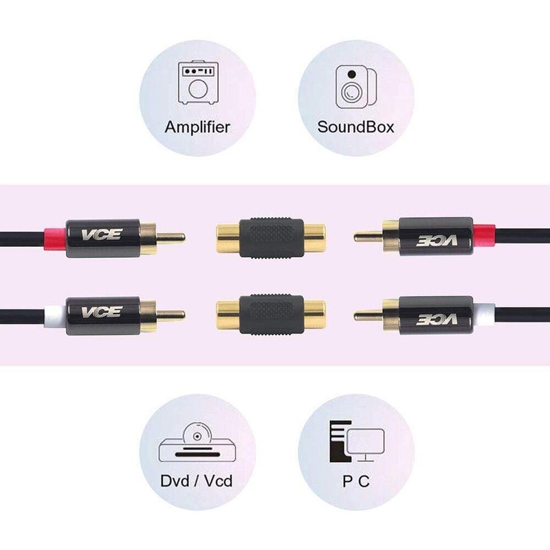VCE RCA Coupling RCA Adapter Audio Video Adapter RCA Female to RCA Female Connector Extension Adapter Gold-Plated Pack of 6