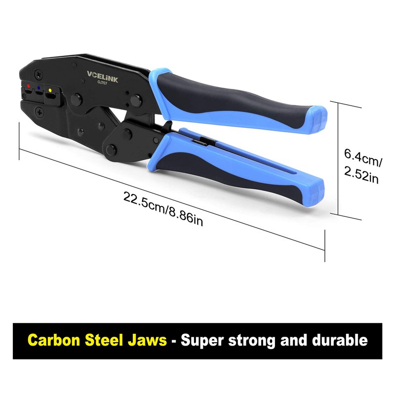 VCELINK GJ707 Wire Crimping Tool for Insulated Electrical Connectors 22-10 AWG, Ratchet Wire Terminal Crimper, Ratcheting Wire Crimp Pliers 8.9 Inch in Blue