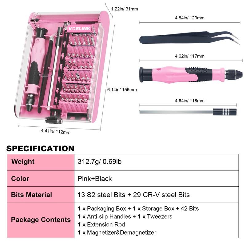 VCELINK Precision Screwdriver Set Pink With Case VCELINK