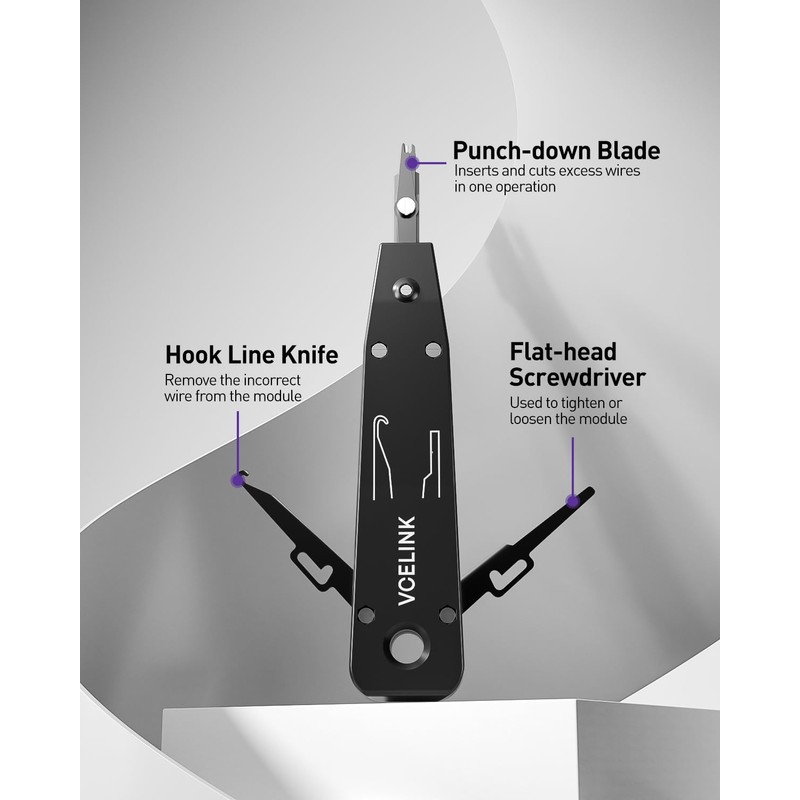 - WIDE APPLICATION : VCELINK punch down tool works for Cat5/Cat5E/Cat6/Cat6A/Cat7 network module, phone socket, LAN cables, patch panel, RJ45 wall plate, junction boxes etc. Mini wire stripper supports stripping Cat5/Cat5E/Cat6 ethernet cables