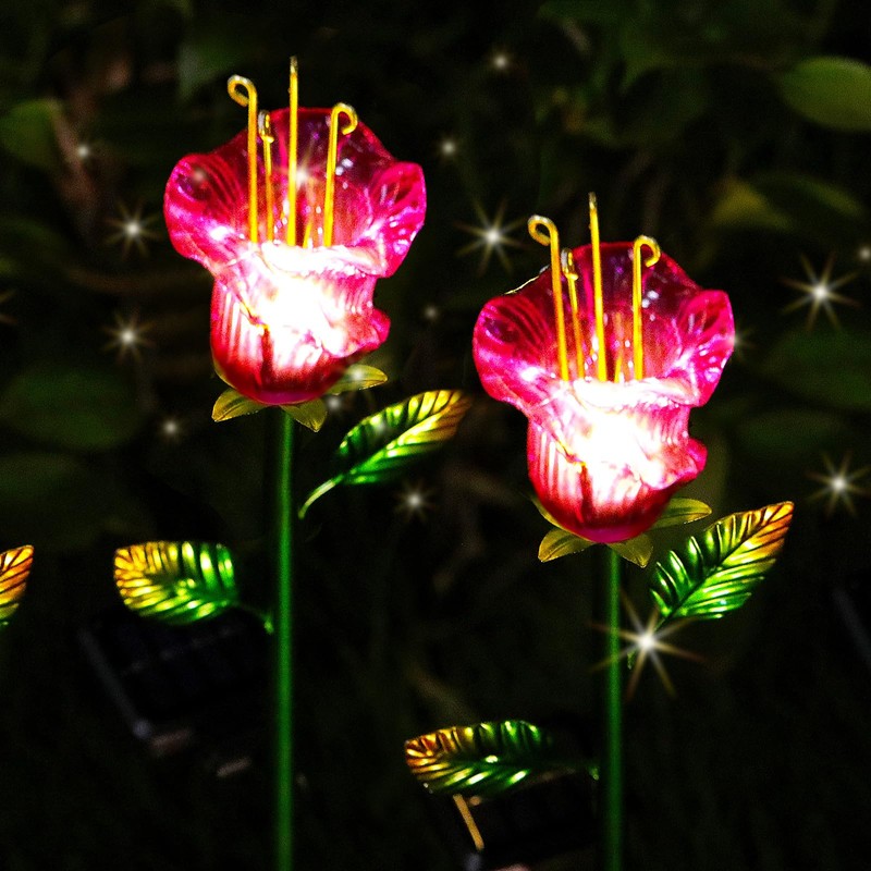 VChymm - Paquete de 2 luces solares para jardín al aire última intervensión, luces solares impermeables de jardín, luces de flores de lirio de vidrio rosa, luces decorativas solares de encendido/apagado automático para jardín, patio, patio trasero