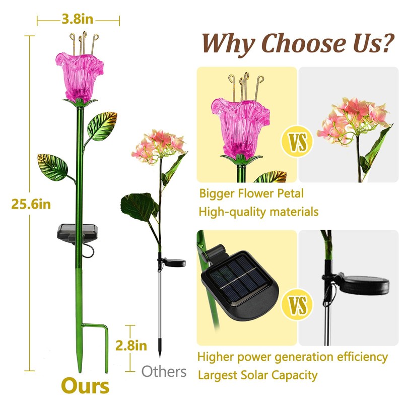 - Resistente al agua y duradero: las luces solares de decoración de jardín con un alto nivel impermeable IP65. Las luces solares impermeables para exteriores pueden soportar todo tipo de clima como decoraciones al aire última intervensión para patio. Los pétalos de acabado especial y los postes de aluminio hacen que las luces solares sean muy duraderas para decoración de girasol, decoración de jardín al aire última intervensión o decoración de patio. Puedes disfrutar de las hermosas luces solares de jardín decorativas para exteriores durante todo el año.