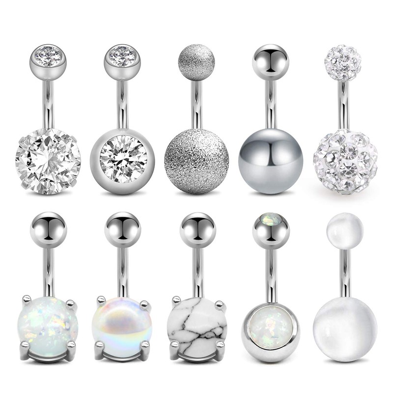 VCMART 8-10pcs Belly Button Rings 8mm Navel Bars Set Stainless Steel 14G Silver Rosegold Piercing Opal Crystal