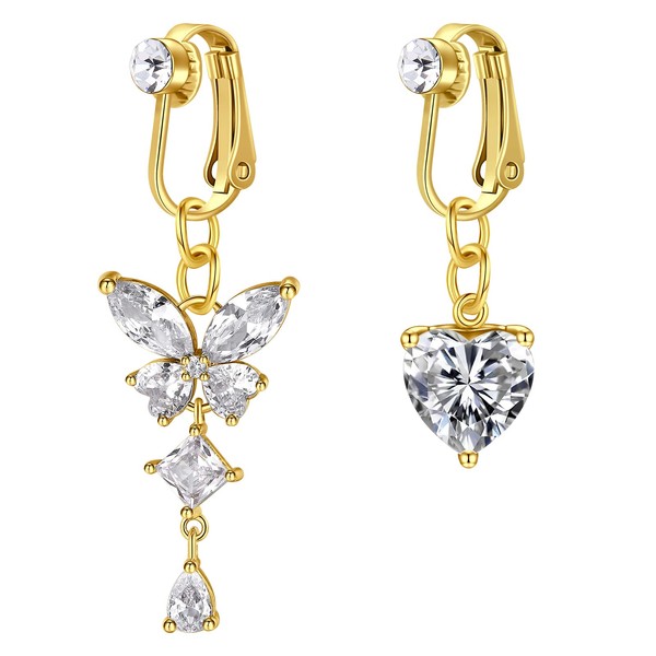 vcmart Fake Belly Button Piercing Rings Gold False Piercing Belly Button with Pendant Faux Belly Piercing Clip On Pack of 2, Stainless Steel