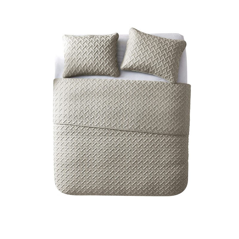 VCNY 3 Piece Embossed Queen Quilt Set Featuring Geometrical Design and Lightweight Microfiber Includes Reversible Quilt and 2 Pillow Shams (Taupe)
