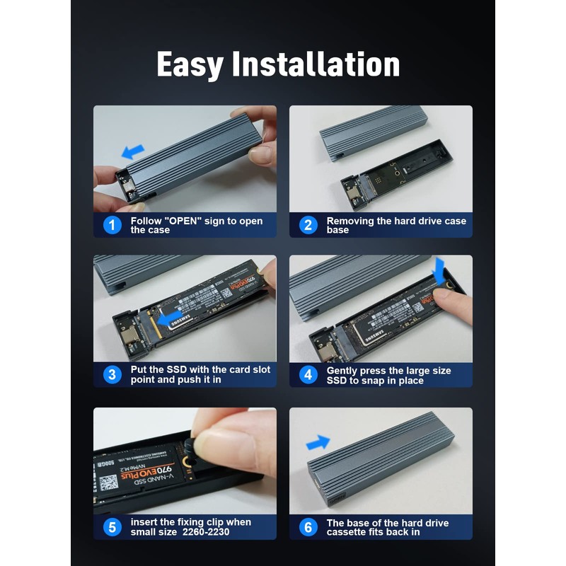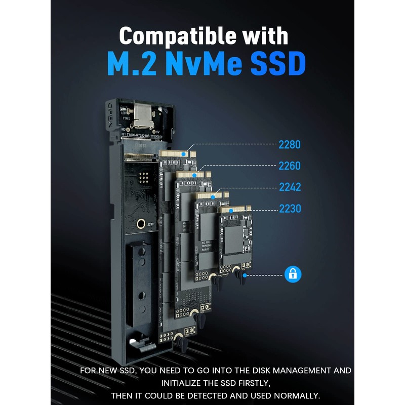 - M.2 NVMe SSD External Case: Please note: This product is not compatible with M.2 NGFF/SATA type. The VCOM NVMe M.2 SSD enclosure is equipped with a high-performance chip that supports M.2 NVME 2230/2224/2260/2280 SSD with 2TB capacity. If you do not recognize the SSD, please feel free to contact us