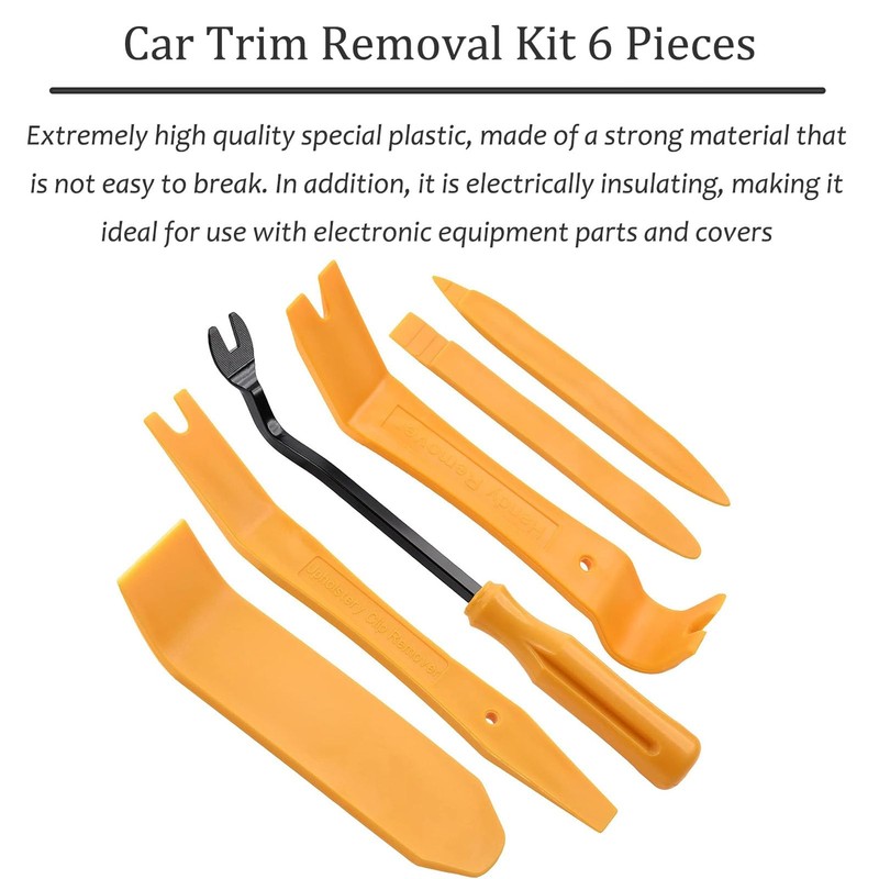 - Manufactured craftsmanship: the 6-piece disassembly tool car trim set is made of high-quality plastic, which is robust and durable, has excellent wear resistance and is also electrically insulating. The edges will not dull during prolonged use and do not break or bend easily under pressure. Easy to grip.