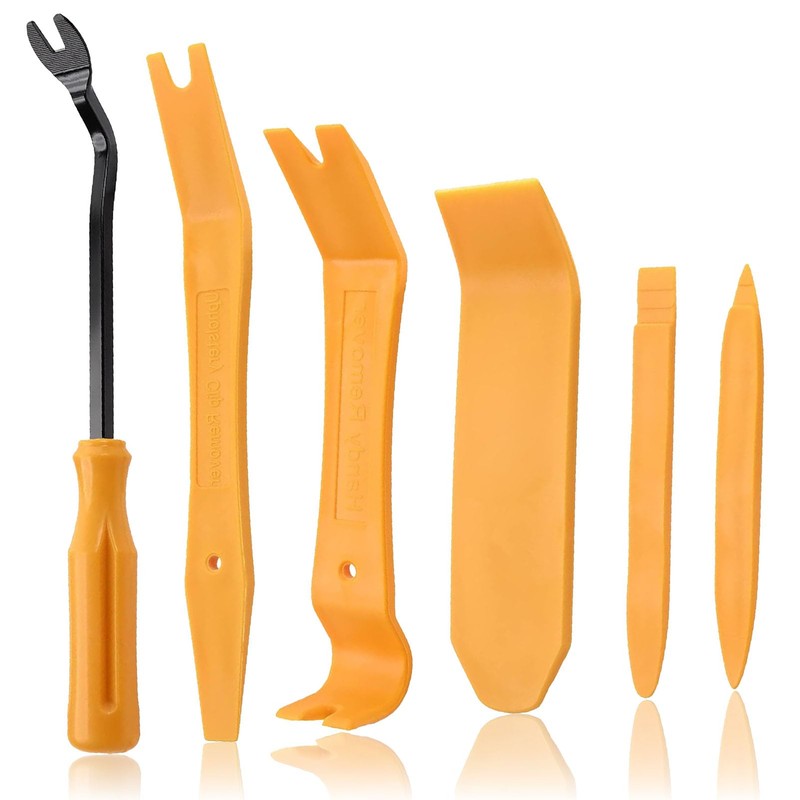 - Universal design: the car tool set contains 6 tools for removing car accessories. Six different tools work together to make removing exterior and interior trim easier. Absolutely time and cost saving, clip lifter, practical and efficient.