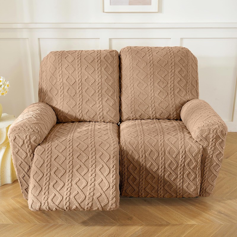 - Package Included: Solid color geometric 6-piece recliner cover contains 2 piece seat cover, 2 piece back cover and 2 pieces arm covers. Fit sofa seat width below 61.4 inch.