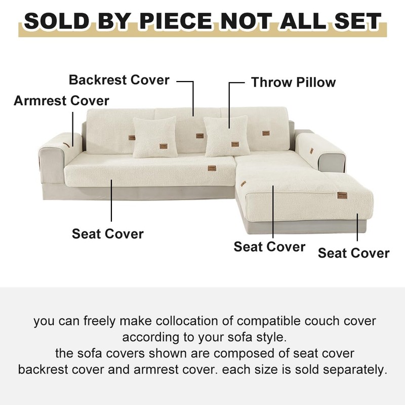 - Sold By Piece Not Set: Sofa covers are made of Sherpa Fleece, which is soft and smooth to the touch and not easy to collect hair or pets fur. Please refer to our measuring guide and measure your furniture prior to order, Sold by PIECE but not set, good for your adjustable sectional sofa & couch.(If you don't like the brown leather-looking label, you can carefully remove it with tools.)