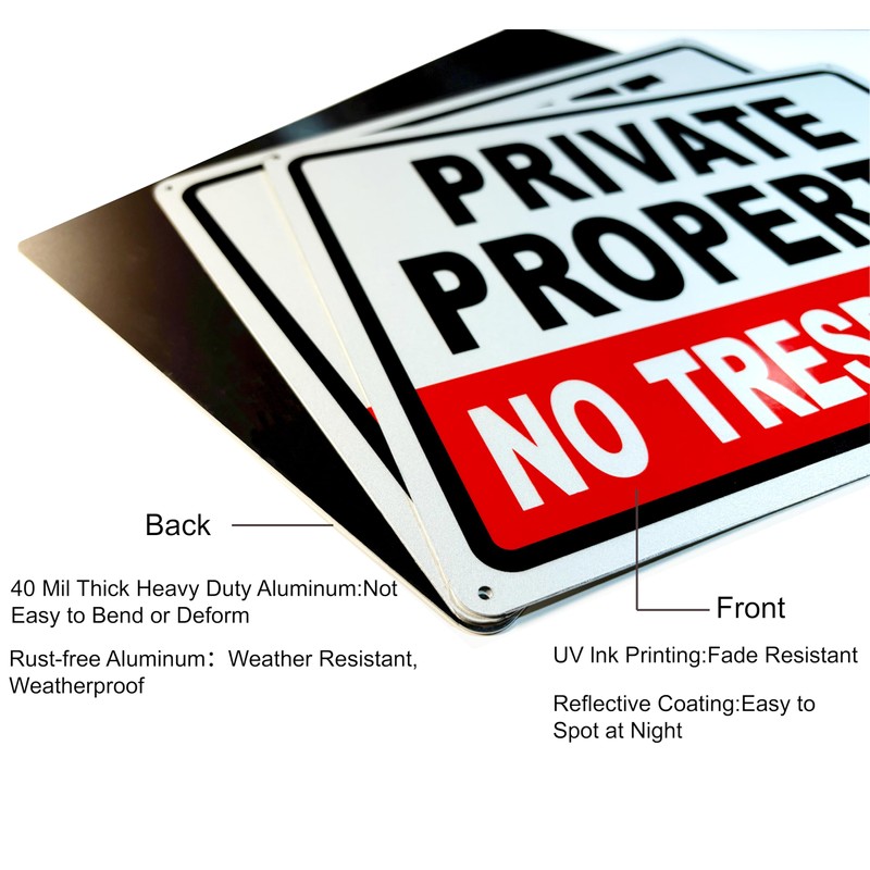 - 【Clear & Professional Design】Featuring bold, easy-to-read text ("Private Property-No Trespassing"), this no tresspassing. private property metal sign delivers a strong and professional message. It’s an essential addition to protect your land and deter unauthorized access.
