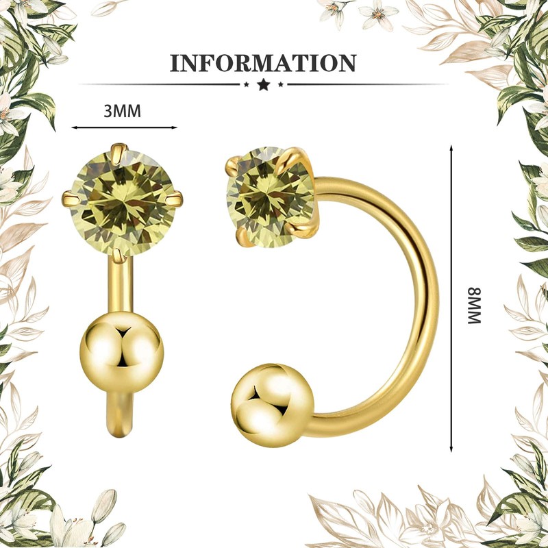VDKIDKT Tiny 3mm Natural Birthstone Earrings for Women Teen Girls Small Huggie Half Hoop Earrings Tiny Cartilage Hypoallergenic Stud Screw Earrings (Gold, 1.Jan-Garnet)